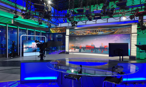 联建光电全媒体广电演播室解决方案以高清LED显示屏作为内容呈现载体,集合了虚实结合、虚拟植入、大屏包装、在线包装、融媒体接入、流媒体推送、数据可视化等为一体,在营造节目气氛、烘托气势、信息呈现多元化、加强现场主持连线、观众互动方面取得质的飞越,极大地增强了信息交互性和选择性,给观众以强烈的视觉震撼效果,为节目表现形式带来全新的革命。
